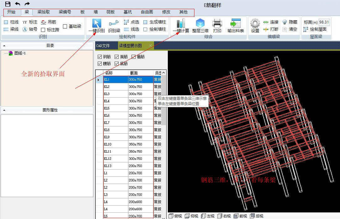 1、全新E筋翻样专业版、图形版、E筋模板算量软件