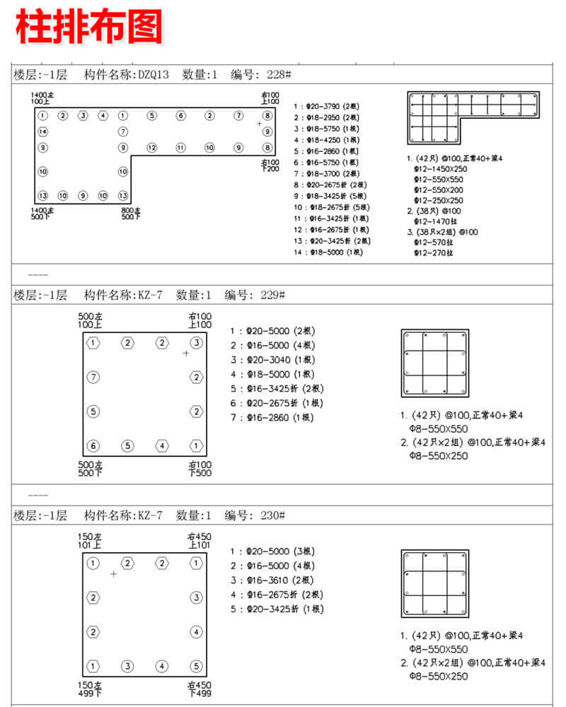 柱大样外箍筋内箍筋加水平筋混合拾取