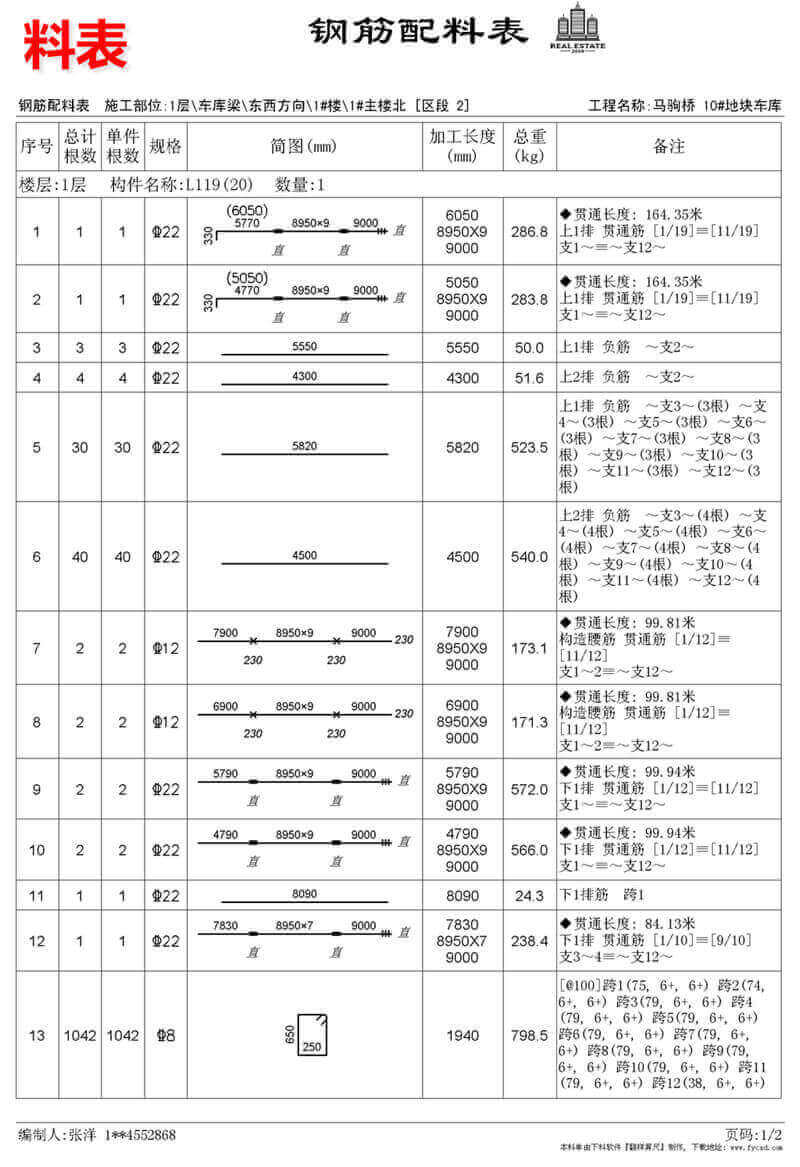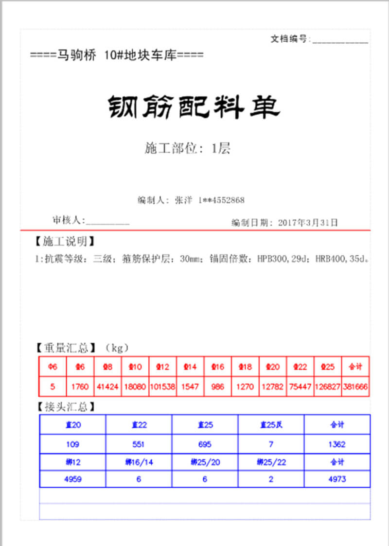 中牟9#楼基础翻样实战案例(4)底筋编号出料单