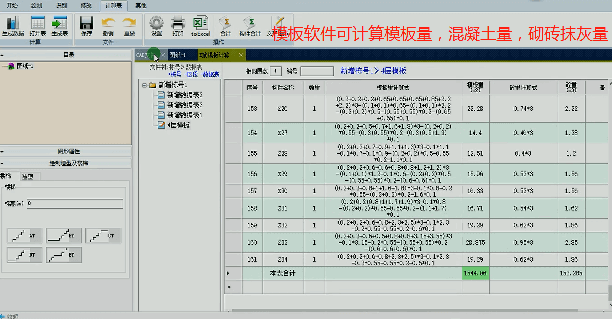 软件构件丰富,梁板柱墙基础楼梯基坑等构件都有,支持从CAD提取数据,效率比手工快20倍。